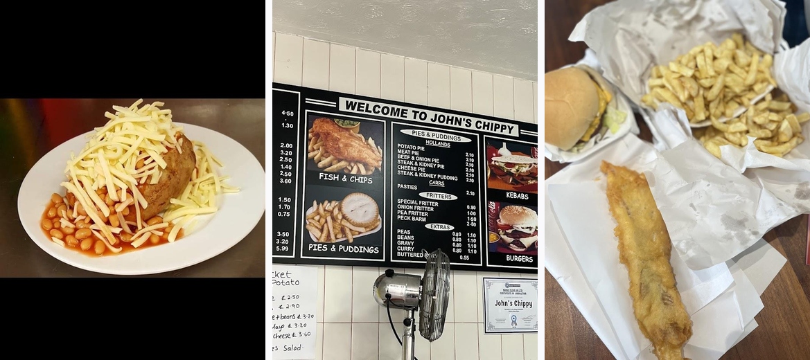 My local and best chippy now ran by judith and her daughters due to johns ill health always the best food and do a peck barm wich to them that dont no what that is its a barmcake with chips peas and red onions on and is the fittest thing ever also pea fritters n onion fritters donnor kebabs burgers